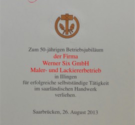 Jubiläum 50 Jahre Malerfachgeschäft Werner Six GmbH